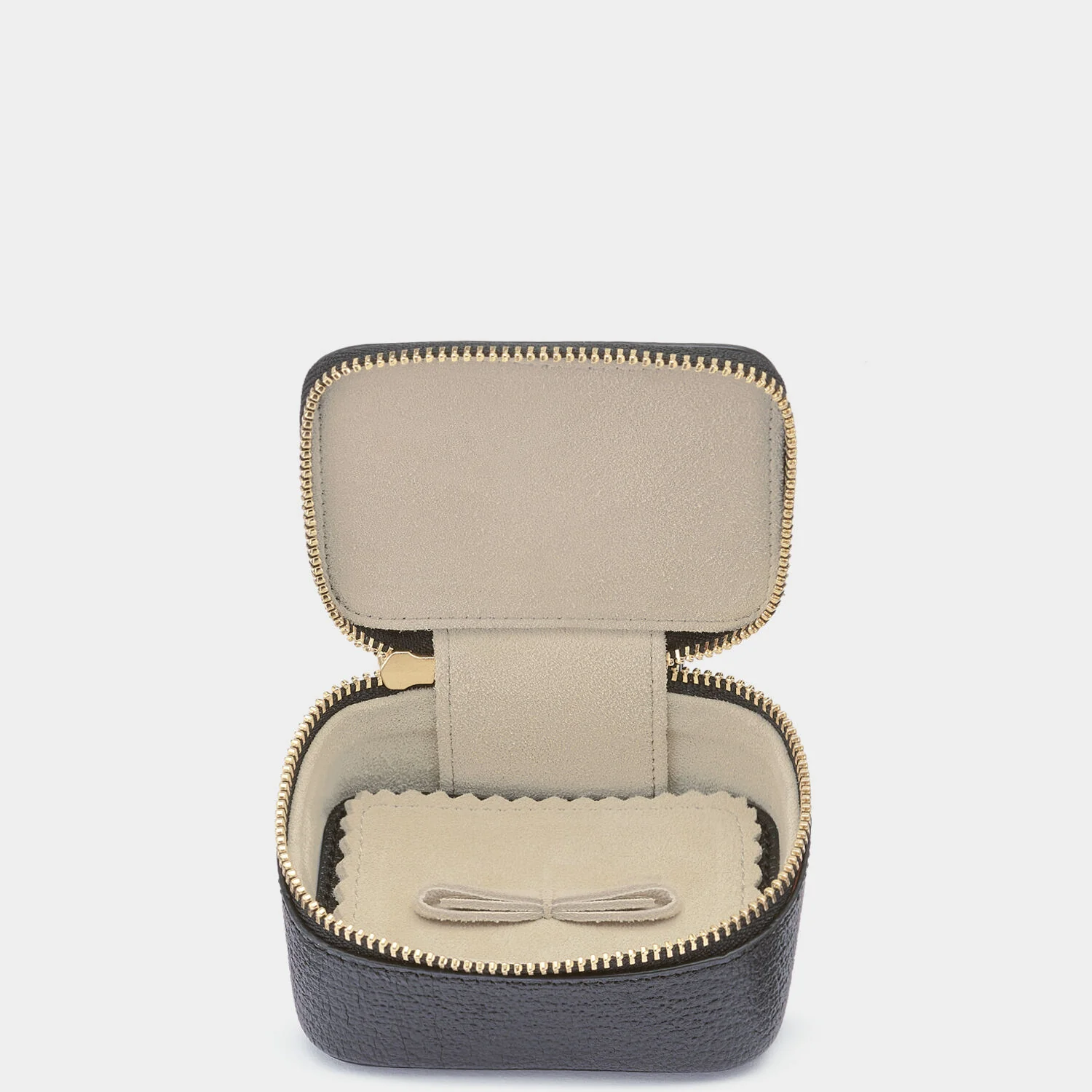 Good things come in small packages and our compact Keepsake Box is a fine example. Crafted from capra leather with gold-tone hardware, it can be personalised with embossed initials, a name or a handwritten message. It opens via a tassel-adorned zip to reveal a suede-lined interior, complete with a secret photograph of your choosing hidden within the lid. Enclose precious photos, ticket stubs and other memories to start your recipient’s collection.